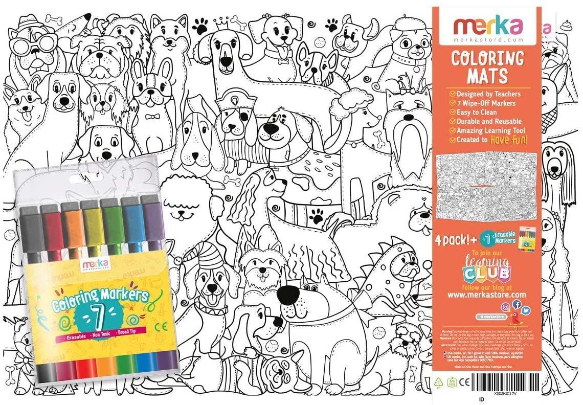 Merka Drawing Pad Of Cats And Dog 4 Pack With 7 Erasable Markers Fun Activities Learning Non Slip Placemats Gamestop